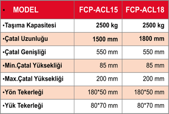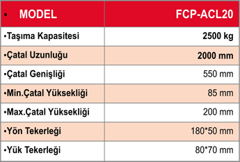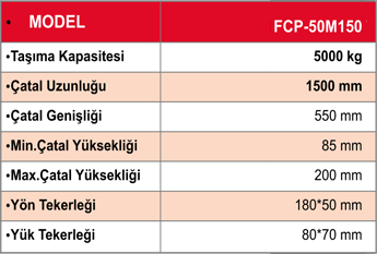 AĞIR HİZMET TRANSPALET FCP-50M-150 1500 MM 5000 KG